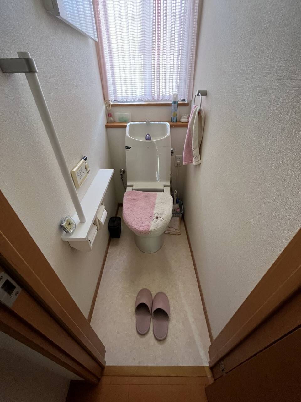 トイレ室のリフォームをご依頼いただきました。新しいトイレはタンクが棚に内蔵されているタイプのLIXILリフォレです。収納があり、見た目すっきり。