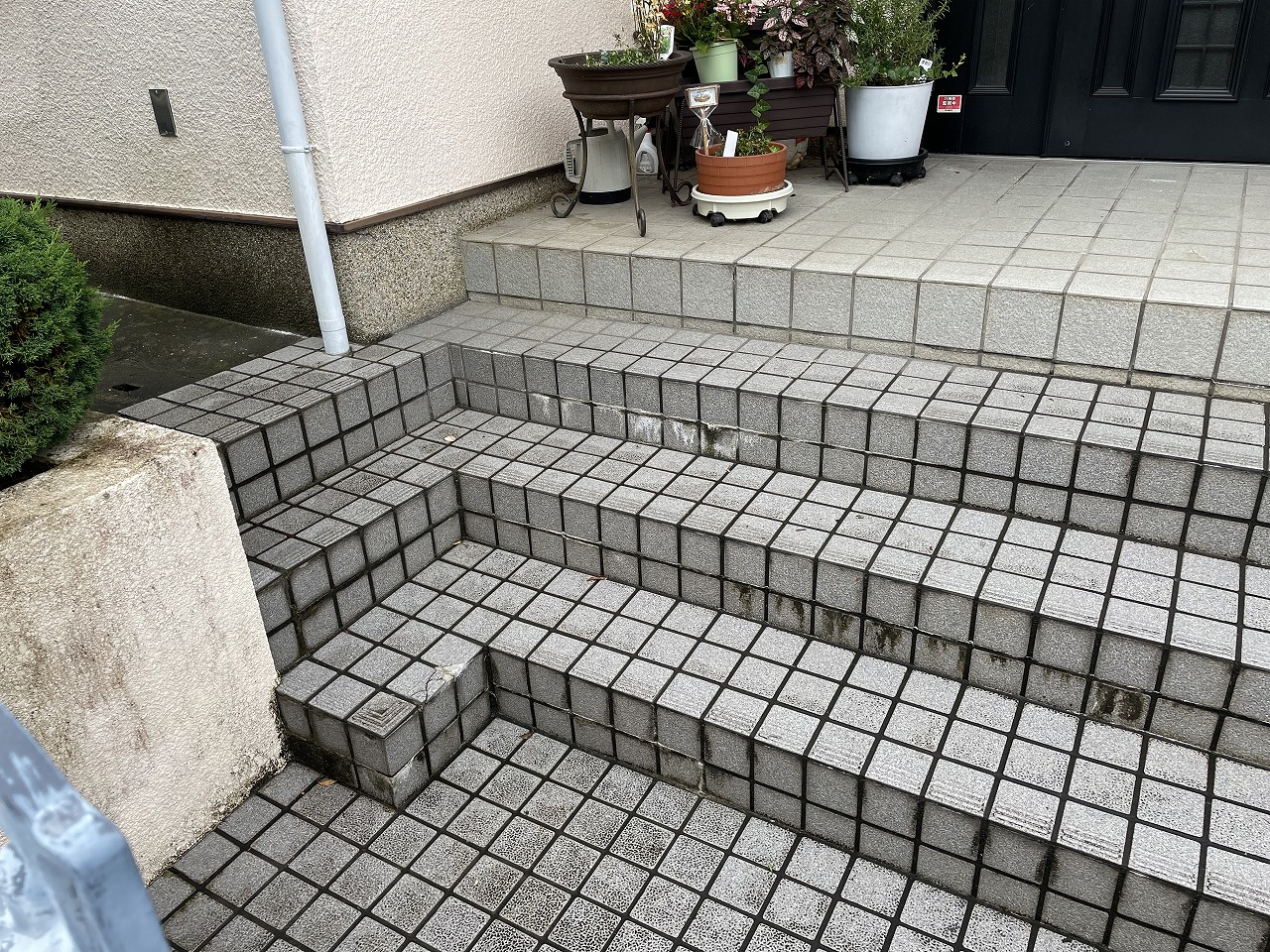 汚れや割れた箇所が気になる… とのことからタイルの張替へ! 色合いを統一するために全体張替になりました。