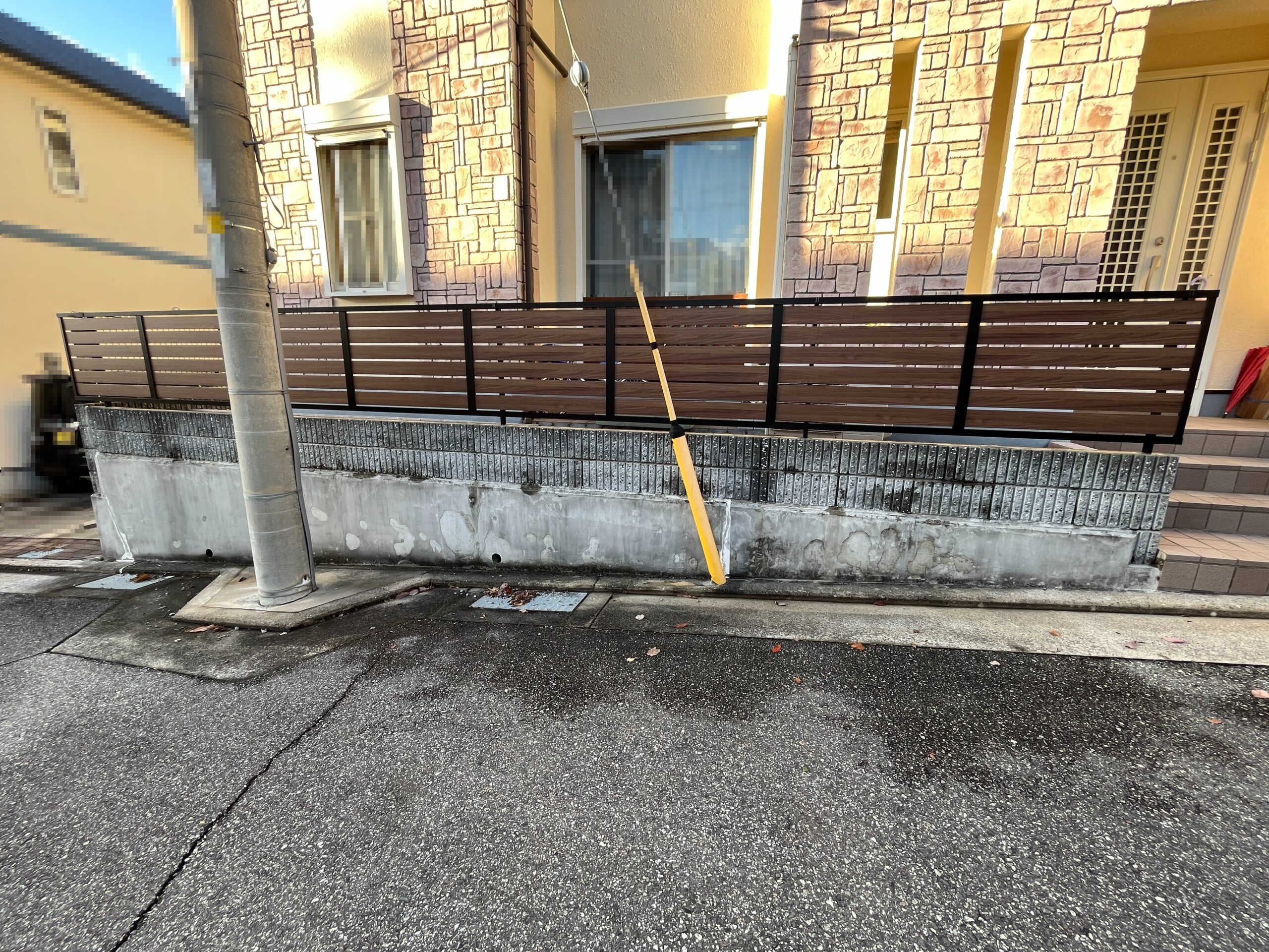 十数年使用されてきたフェンスからの交換のご依頼をいただきました。当日は朝から冷え込み、さらに雨まで降って大変寒い一日でしたが、職人さんが頑張ってくださりました。新規フェンスのデザインはカタログだけでは分かりづらく、2候補で悩まれていました。しかし、2候補まで絞っていただければ、あとは家族会議!色柄サンプル帳をお渡し、それを基に最終決定していただきました。かっこいいお洒落な雰囲気になって、御施主様に喜んでいただくことができました。またのご依頼お待ちしております。